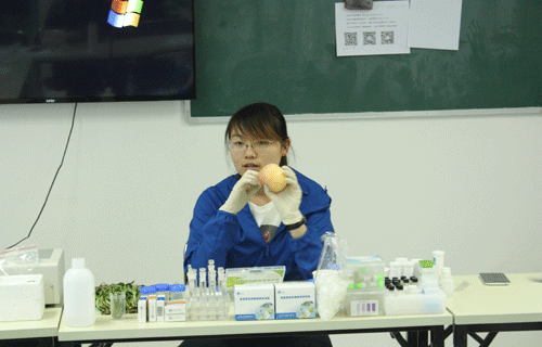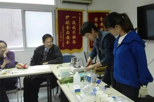 下午由東北農(nóng)業(yè)大學(xué)食品工程專業(yè)碩士董鑫帶領(lǐng)學(xué)員動(dòng)手實(shí)操體驗(yàn)快檢,學(xué)員自己動(dòng)手操作檢測(cè)了常見果蔬中的農(nóng)藥殘留,牛奶中三聚氰胺檢測(cè)、泡椒鳳爪雙氧水檢測(cè)、冰糖二氧化硫檢測(cè)、速凍水餃亞硝酸鹽檢測(cè),食用油脂、地溝油等的快速檢測(cè)等,實(shí)操課程學(xué)員顯現(xiàn)出了飽滿的熱情和認(rèn)真細(xì)心的態(tài)度,課程結(jié)束學(xué)員還意猶未盡。