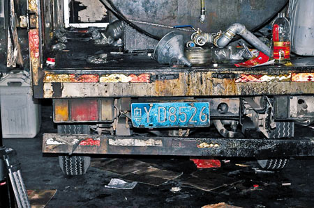 制假現場,一輛改裝車的車廂中,黑乎乎的大油箱內裝滿了劣質油