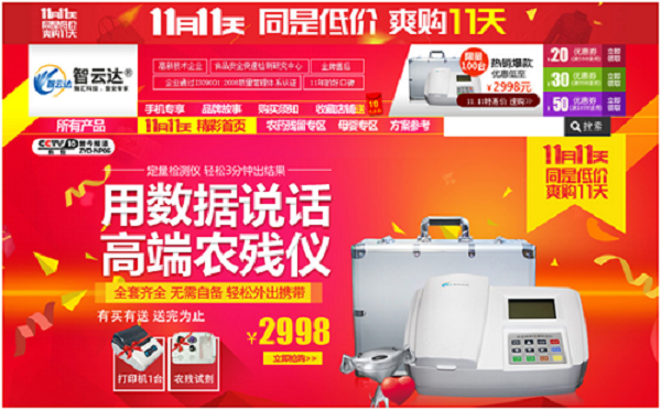 雙11來啦,瘋狂促銷購,大家還為吃的不放心而煩惱么?不要著急,智云達天貓官方旗艦店,智云達京東店,在雙11為食安助力,讓喜愛“買!買!買!”的各位能夠買到更加安全食物,讓全家吃得更安心。