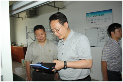 隨后,領(lǐng)導(dǎo)們參觀了儀器試劑生產(chǎn)中心,就有關(guān)儀器生產(chǎn)中可能出現(xiàn)的問題,進行了詳細的詢問,在??偟慕獯鸾榻B中,于軍司長還親自試用了我司生產(chǎn)的