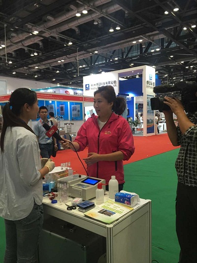 北京電視臺的記者被智云達展位前擁擠的人群吸引過來,對公司及儀器很感興趣,并對技術(shù)人員進行現(xiàn)場采訪。北京智云達由一支以食品安全檢測、化學分析、計算機軟硬件以及光學儀器開發(fā)為主的博士、碩士為核心的高科技人才隊伍組成。現(xiàn)已研發(fā)出六大系列食品安全快速檢測產(chǎn)品,取得了多項發(fā)明專利,公司長期關注食品安全問題。