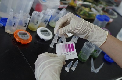 北京智云達(dá)技術(shù)工程師楊老師和趙老師將準(zhǔn)備好的樣品分別進(jìn)行標(biāo)號(hào),通過(guò)智云達(dá)自主研發(fā)生產(chǎn)的快速檢測(cè)產(chǎn)品:亞硝酸鹽速測(cè)管,對(duì)樣品進(jìn)行快速檢測(cè)試驗(yàn)。