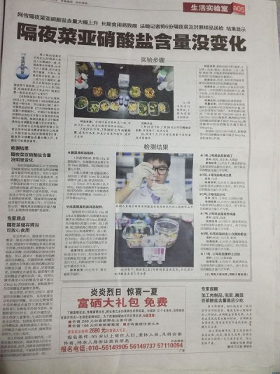 檢測(cè)結(jié)果:六組對(duì)照試驗(yàn)均無(wú)明顯變化,隔夜菜的亞硝酸鹽含量比新炒菜沒(méi)有顯著增高,可以食用。北京智云達(dá)提醒消費(fèi)者剩菜最好保存在冰箱等低溫環(huán)境下,不易變質(zhì),但也不宜超過(guò)兩天,并且不要長(zhǎng)時(shí)間放置在室溫環(huán)境下,細(xì)菌容易滋生,會(huì)將硝酸鹽轉(zhuǎn)化成亞硝酸鹽。