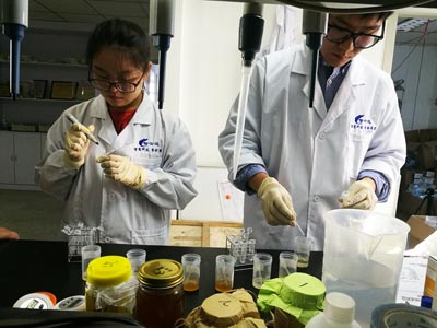 北京智云達技術工程師楊老師和王老師首先對不同樣品通過使用北京智云達自主研發生產的快速檢測產品:蜂蜜中果糖和葡萄糖速測盒,蜂蜜蔗糖半定量速測盒。