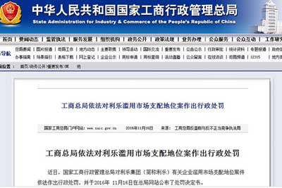 新華網(wǎng)北京11月16日電(記者婁奕娟)11月16日,國(guó)家工商行政管理總局官網(wǎng)發(fā)布處罰決定書稱,2009-2013年期間利樂集團(tuán)(簡(jiǎn)稱利樂)有關(guān)企業(yè)濫用市場(chǎng)支配地位案件,對(duì)其依法作出行政處罰,其中處罰款近6.68億元人民幣。