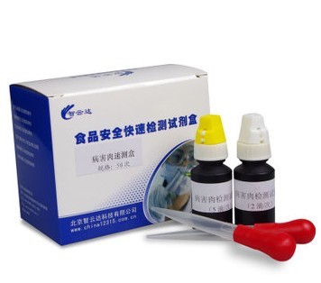 健康畜禽肌肉組織中含有過氧化物酶,當畜禽因疾病發生高度機體障礙而死亡或被急殺時,過氧化物酶含量會減少甚至消失。本速測盒以過氧化物酶為檢測目標,采用目測比色法的原理,通過觀察顏色變化來判定是否是病害肉。