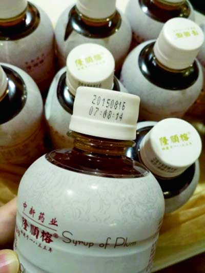 昨日,記者見到了葉女士購買的這批過期酸梅湯,白色塑料包裝外標有“中新藥業(yè)隆順榕牌梅味酸梅湯果味飲料”,每瓶凈含量350克。瓶蓋側(cè)面所打印的生產(chǎn)日期顯示為2015年8月16日,而瓶體上注明的保質(zhì)期為12個月。照此計算,該飲料在2016年8月16日之后就已過期。記者從葉女士的購物小票看到,購物時間為2016年12月4日,也就是說,她購買時過期已將近三個半月。