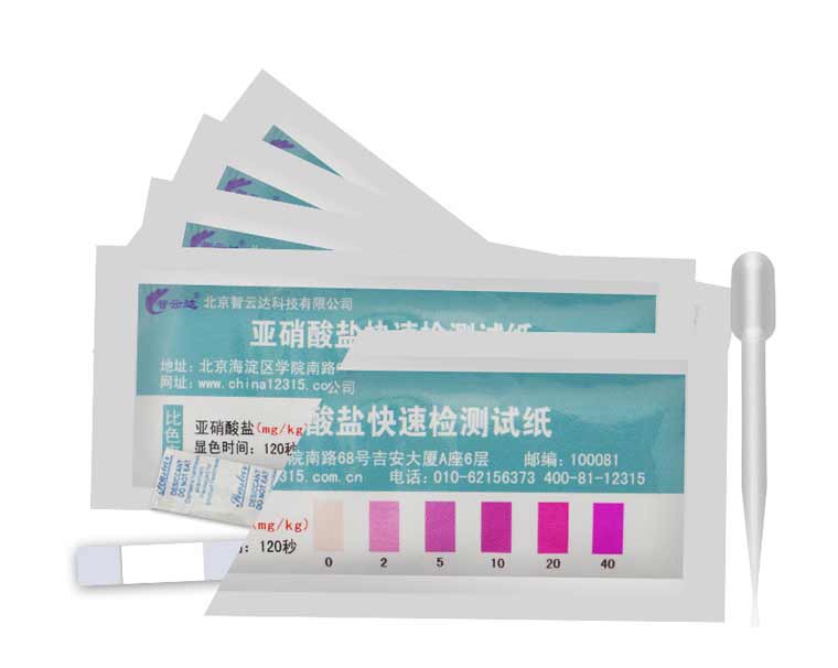 亞硝酸鹽中毒可引起呼吸困難甚至循環(huán)衰竭而死亡,還可與胺類物質(zhì)在適合的條件下形成強(qiáng)致癌物亞硝胺,所以亞硝酸鹽的檢測(cè)有著重要的意義。本品適用于食品中亞硝酸鹽的半定量檢測(cè)。