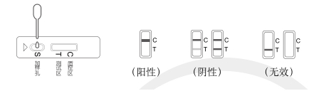 無效:位置 C 不顯示出條帶,則無論位置 T 顯示出條帶與否,該速測卡均判為無效,請重測。