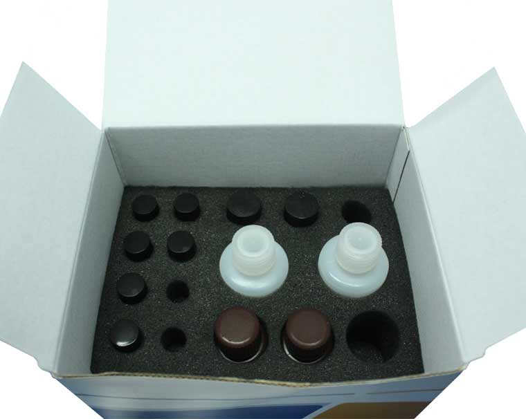 試劑盒保存于2~8℃,不能冷凍,將不用的微孔板重新真空密封。標準物質和無色的顯色劑對光敏感,因此要避光保存。