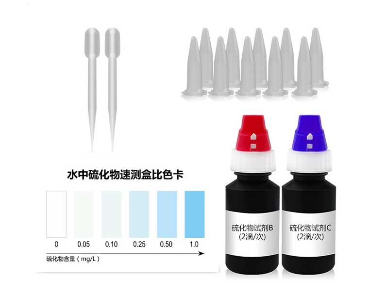 水中硫化物與檢測試劑反應生成藍色化合物,含量越高藍色越深。