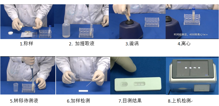 本產品用于快速檢測糧食、谷物以及飼料中伏馬毒素殘留,靈敏度分別為:1000μg/kg,整個檢測過程只需要5分鐘,適用于各類企業及檢測機構。
