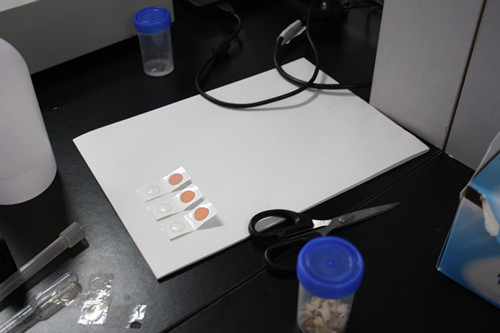 3、將帶有樣品的農殘卡放置 10min 以上進行預反應,預反應后的藥片表面必須保持濕潤。