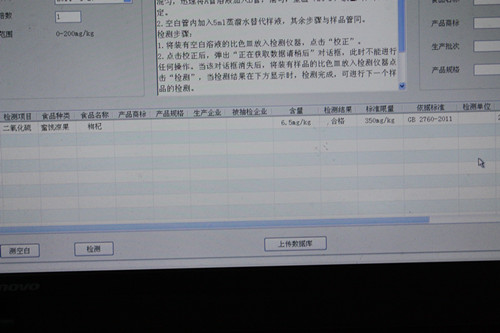 檢測結果:枸杞二氧化硫含量為6.5mg/kg,遠小于國家規定的限量350mg/kg.