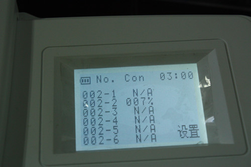 6、將裝有空白液的比色皿放入檢測儀器,點擊“校正”。點擊校正后,彈出“正在獲取數據請稍后”對話框,此時不能進行任何操作。當該對話框消失后,將裝有樣品液的比色皿放入檢測儀器點擊“檢測”,當檢測結果在下方顯示時,檢測完成。