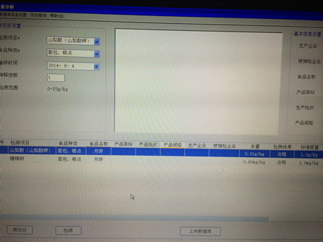 檢測結果:幾項指標均在國家標準范圍內,但是糖精鈉含量為0.6mg/kg,雖小于國標1.0mg/kg,但是并未在食品配料表中標注。