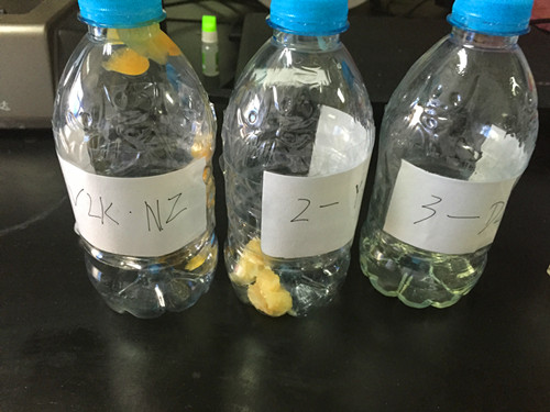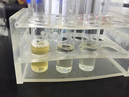 最后觀察實驗結果,發現三種蜂蜜稀釋液都沒有變色情況發生,因此判定沒有摻雜淀粉和糊精。