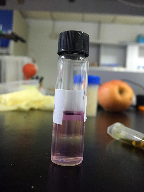 然后用0.5mL吸管吸取試劑A瓶中上層溶液約一半的量至試劑B瓶中;蓋緊B蓋塞子,上下翻轉10次(不可劇烈搖,避免乳化無法分層)使其混合,靜置至清晰分層。