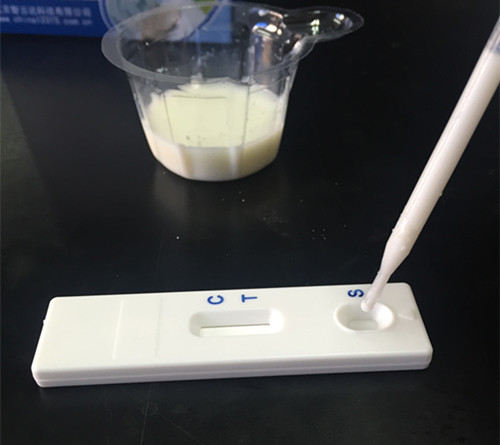 用干燥、潔凈的比色管盛放奶粉,用純凈水1:10稀釋?zhuān)?份奶粉+10份純凈水),溶解后用于檢測(cè)。